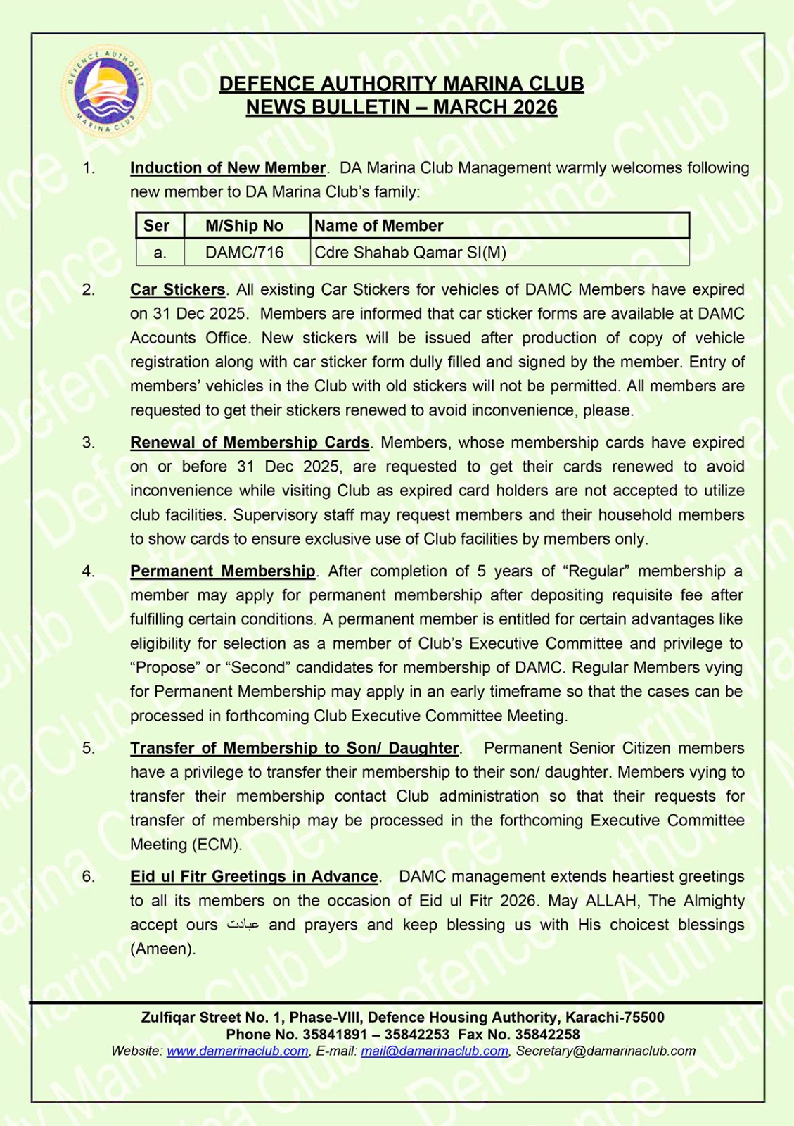New DHA Clubs Membership