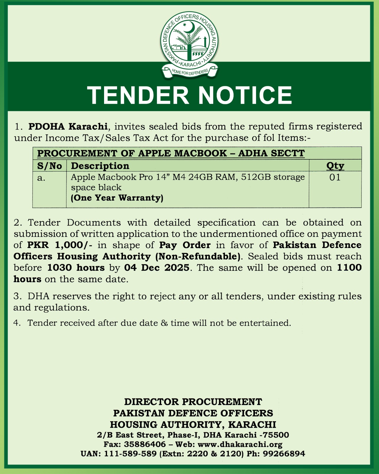 Tender Notice - Apple Macbook