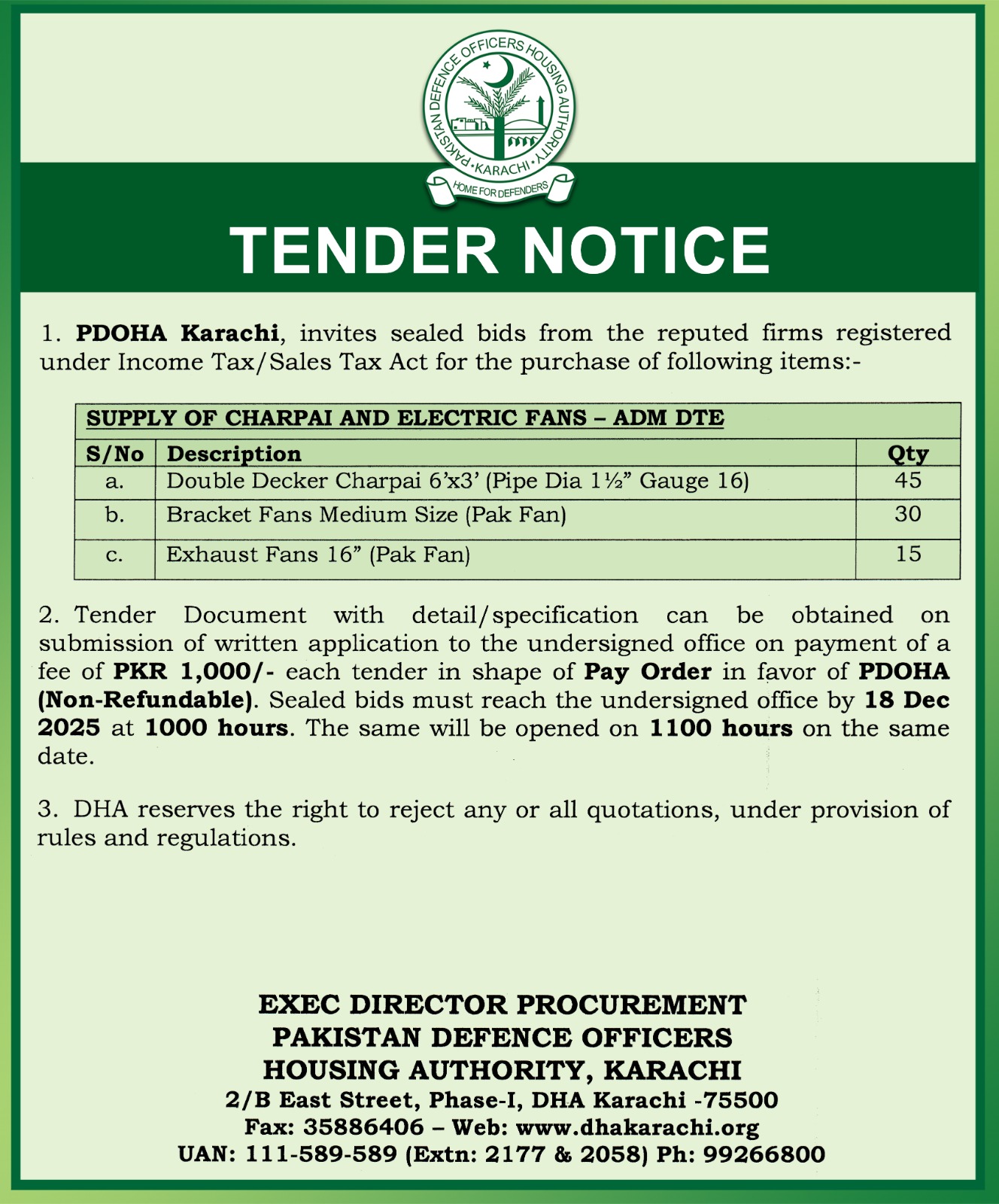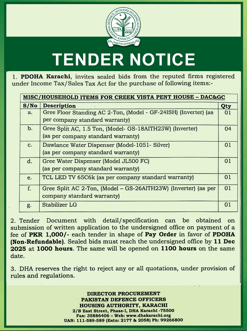 Tender Notice - MISC / Household Items