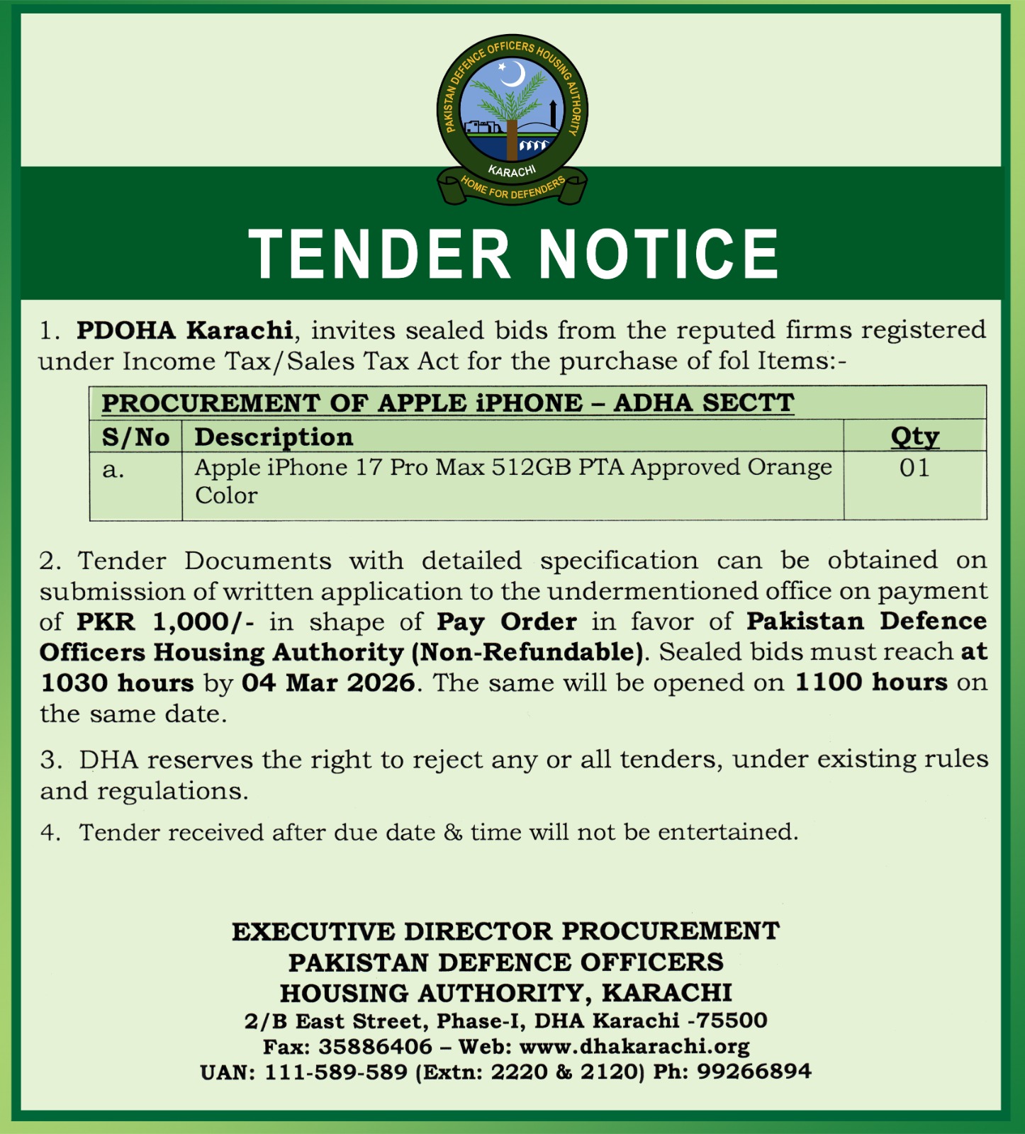 Tender Notice - Apple iPhone