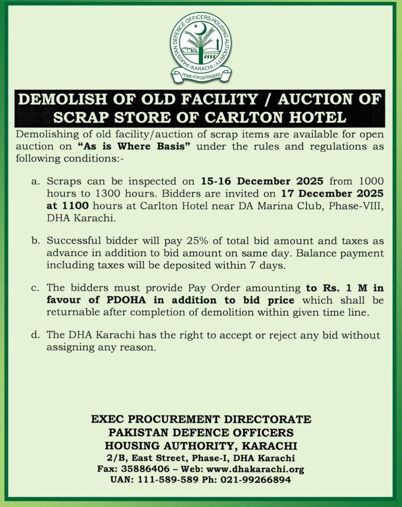 Auction of Scrap Store of Carlton Hotel