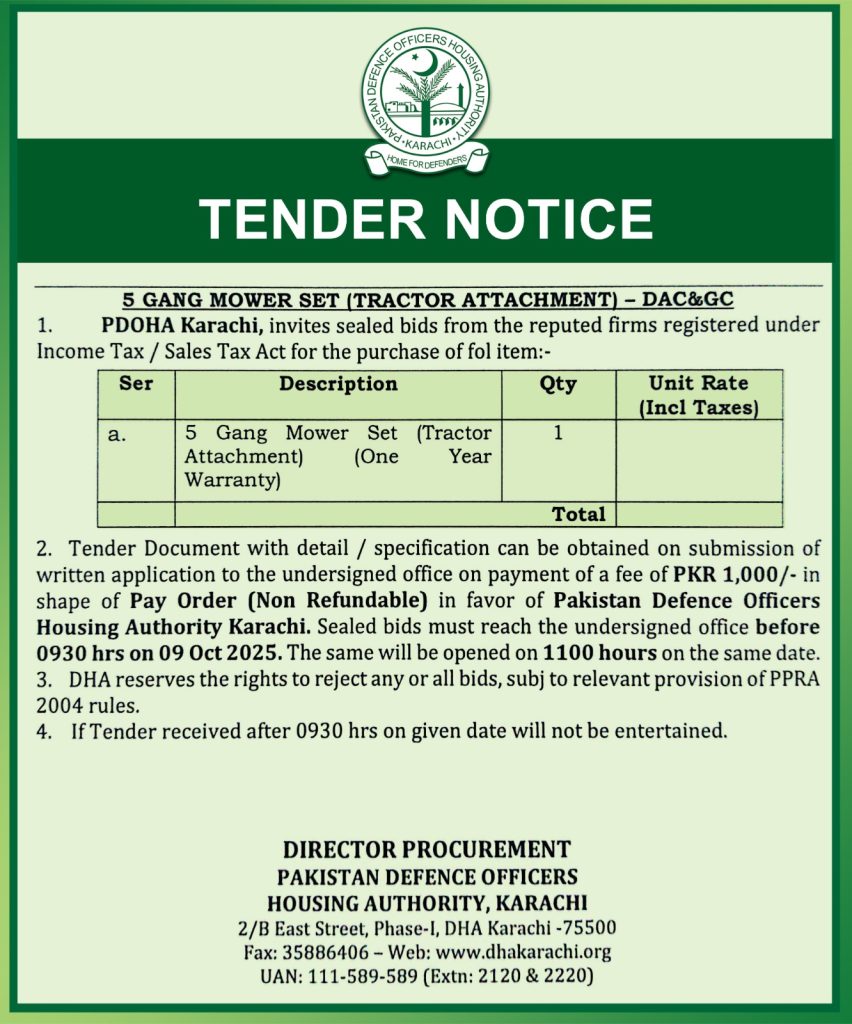 Tender Notice – 5 Gang Mower Set (Tractor Attachment)