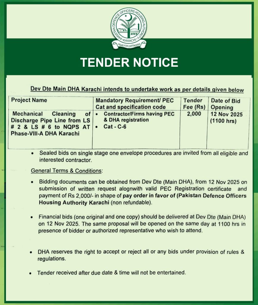 Tender Notice – Mechanical Cleaning of Discharge Pipe Line