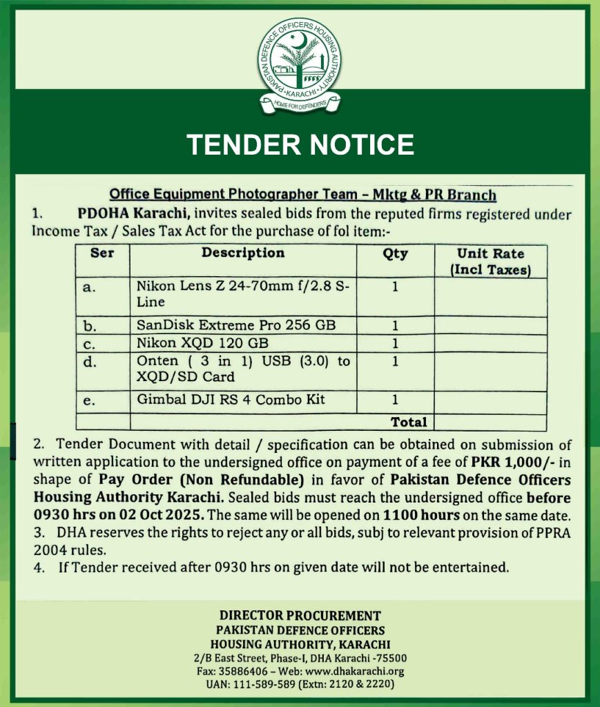 Tender Notice – Office Equipment