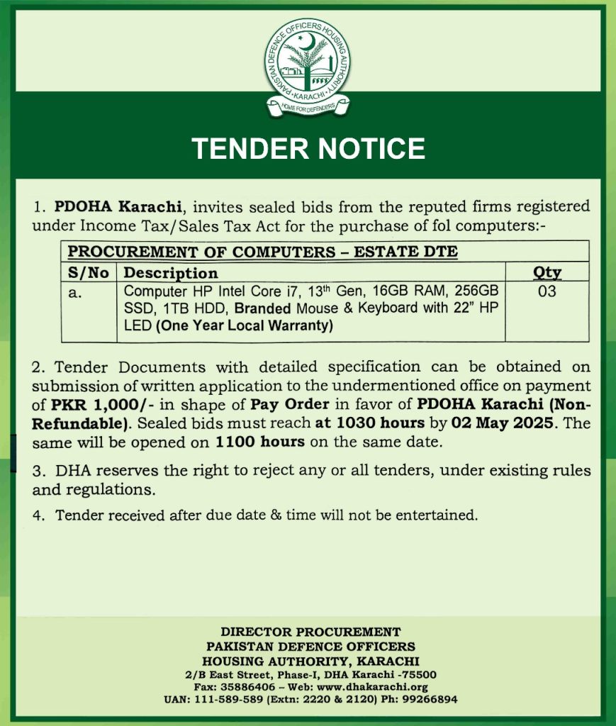 Tender Notice – Procurement of Computers