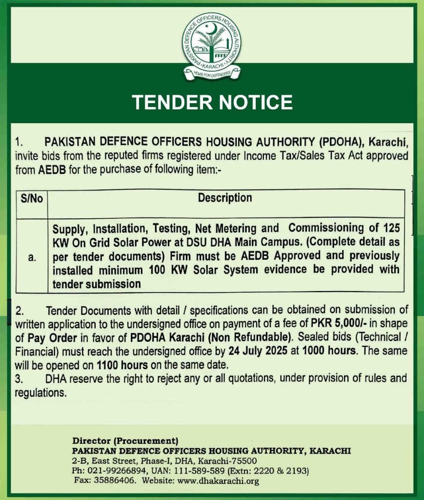 Tender Notice – Provision of on Grid Solar Power System