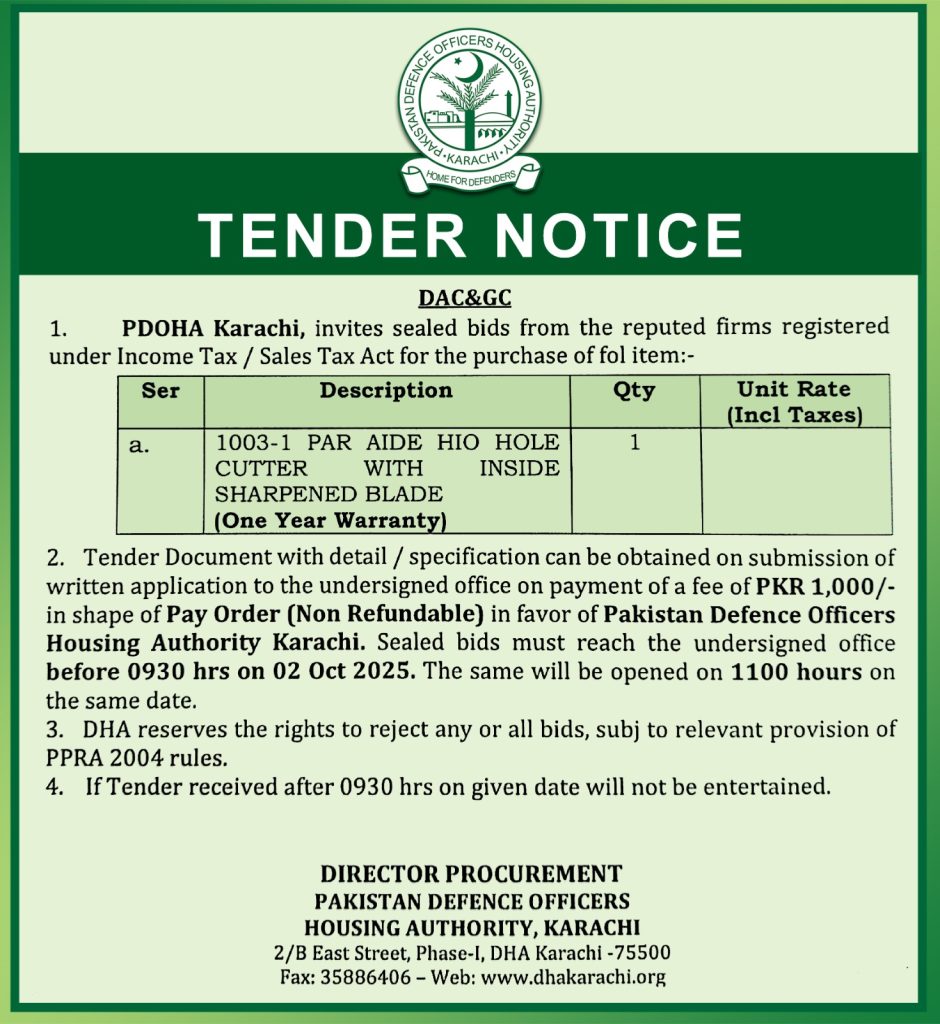 Tender Notice – Purchase of Hole Cutter Machine