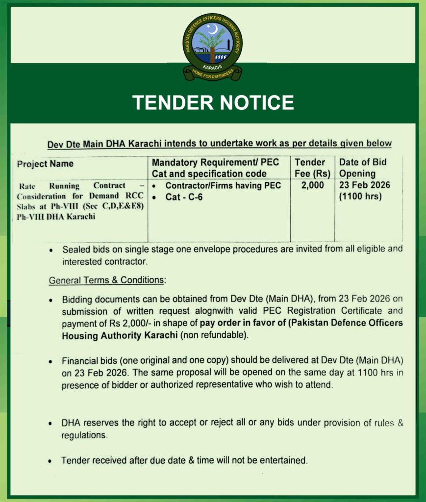 Tender Notice – Rate Running Contract – Consideration for Demand RCC Slabs at Phase VII