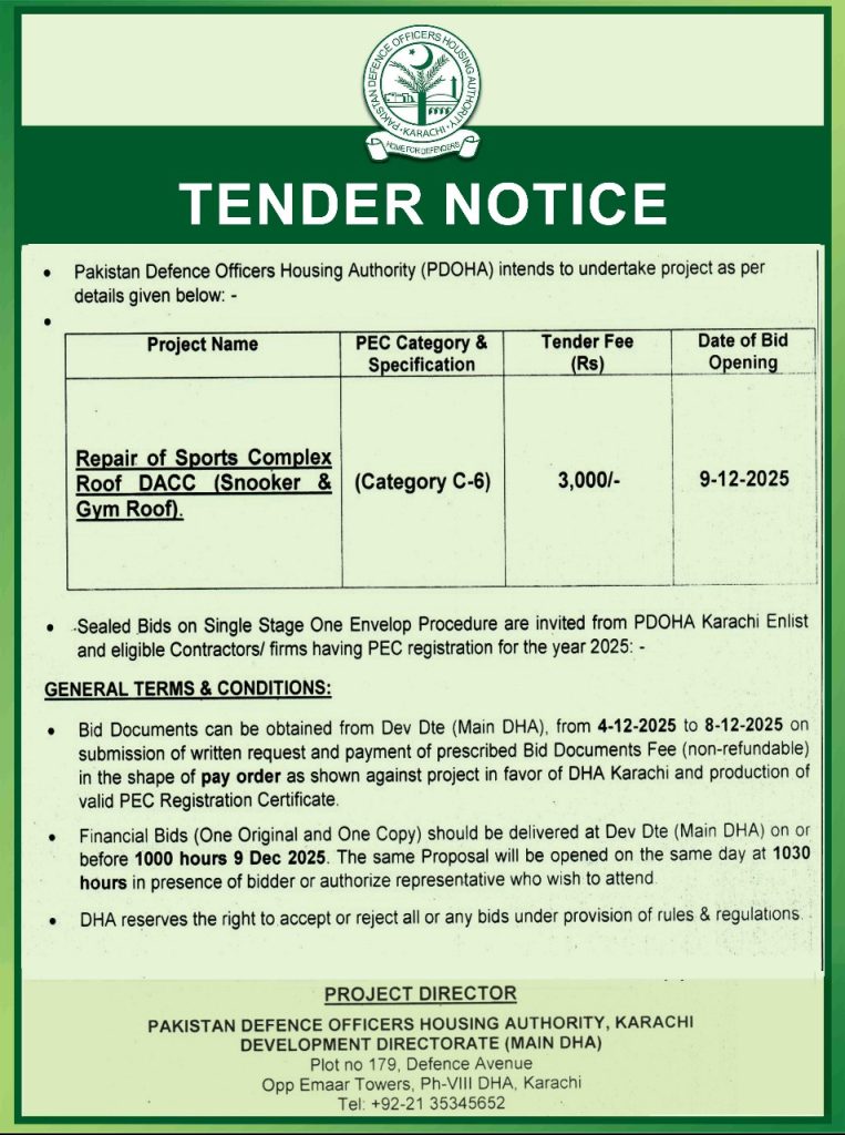 Tender Notice – Repair of Sports Complex Roof