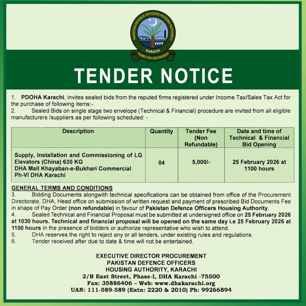 Tender Notice – Supply, Installation and Commissioning of LG Elevators